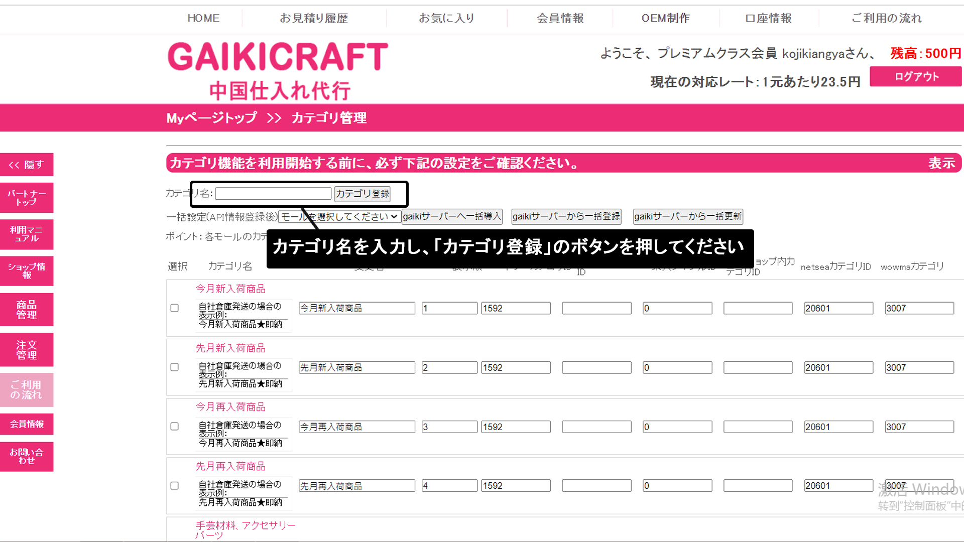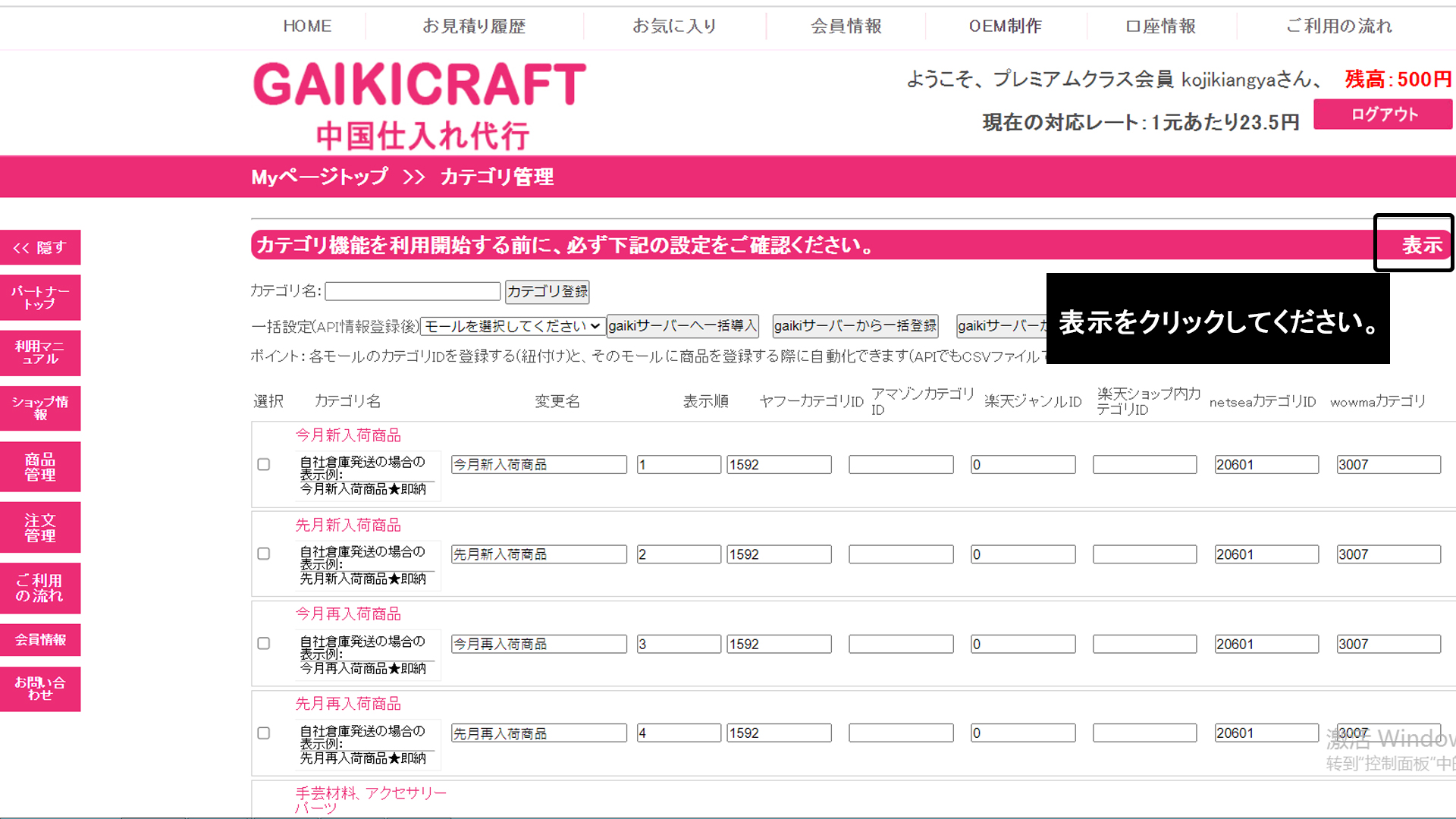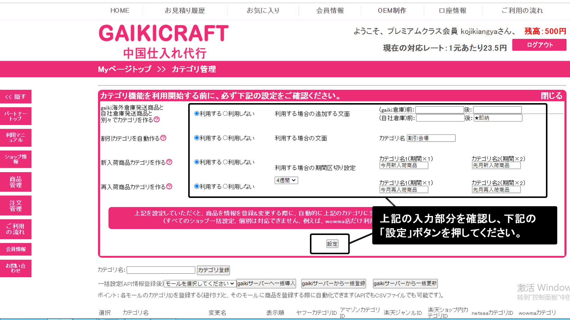 1、ご利用するモールのカテゴリ(ジャンルID)を入力し、楽天の場合は楽天ショップ内カテゴリIDも入力してください。