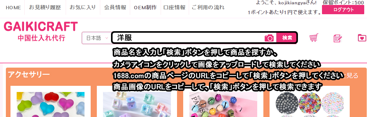 ステップ一:販売したい商品をgaikicraftのHPから検索