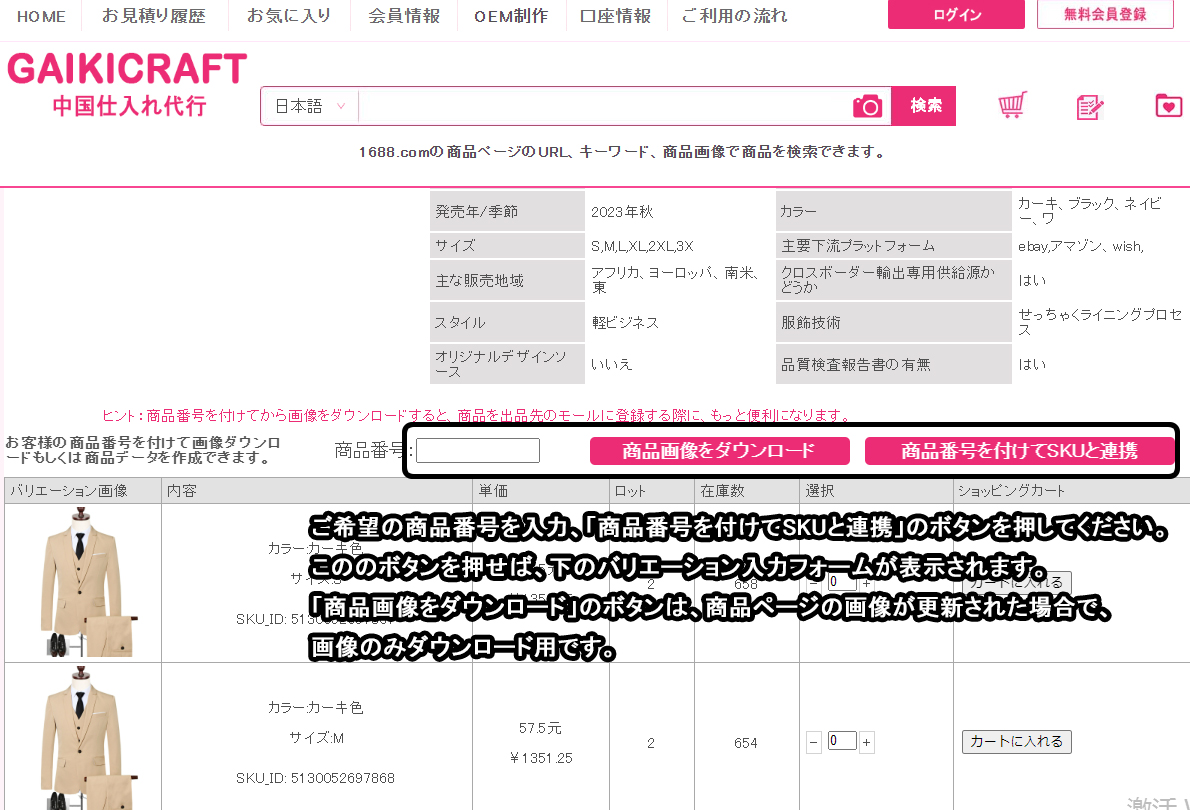 688.comの商品ページのURLで検索した場合はそのままgaikicraft商品ページに行きます。