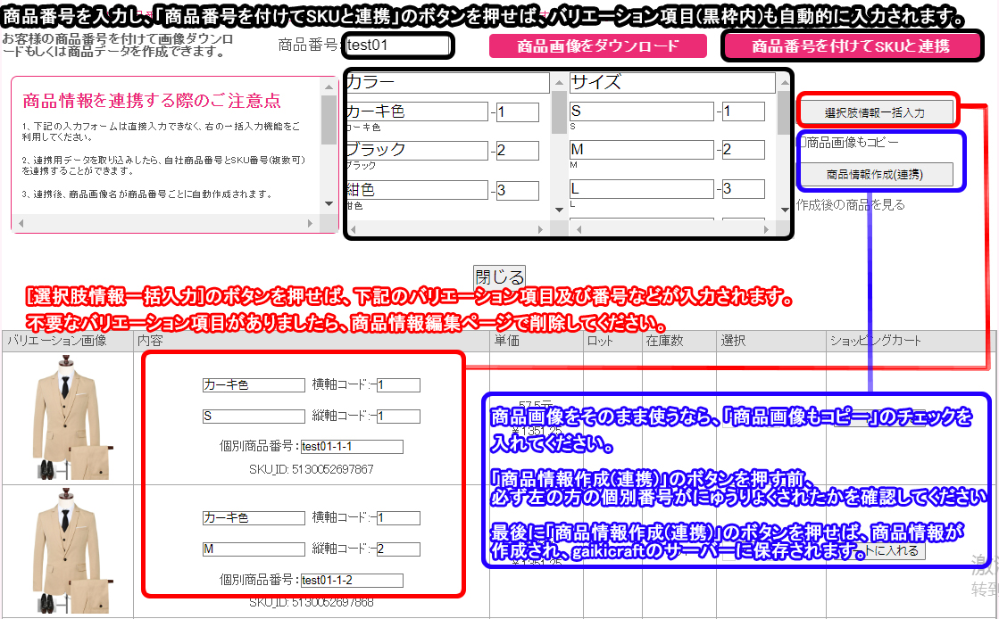 ステップ二:gaikicraftの商品ページで商品番号を付けてSKUと連携