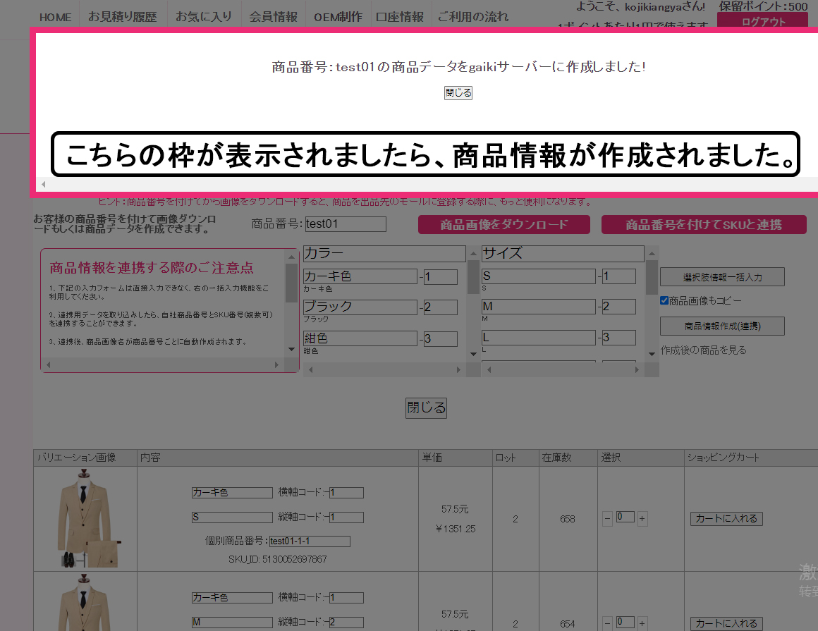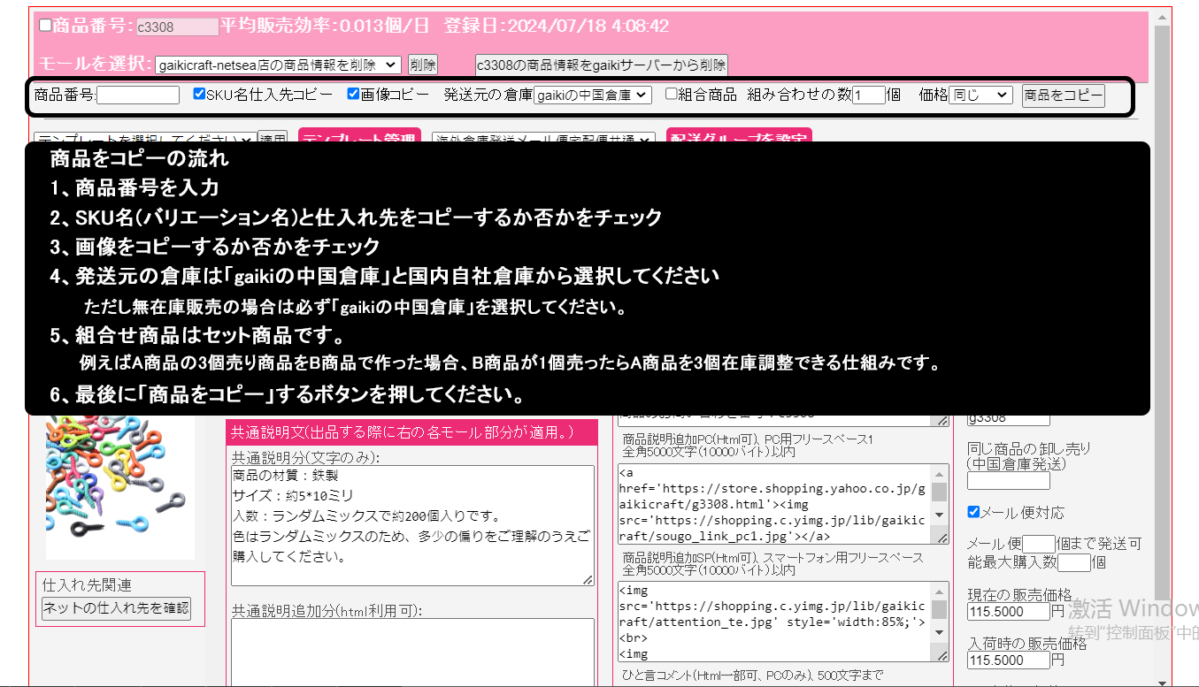 1、gaikiの仕入れ代行ページから商品情報を作成