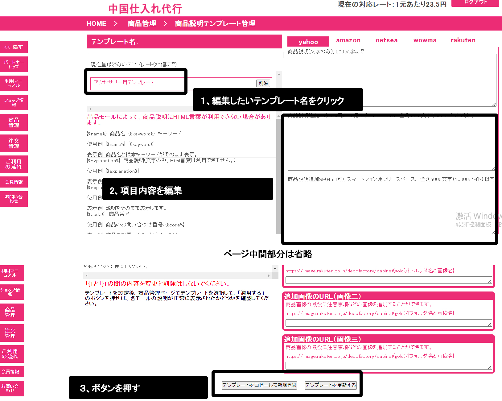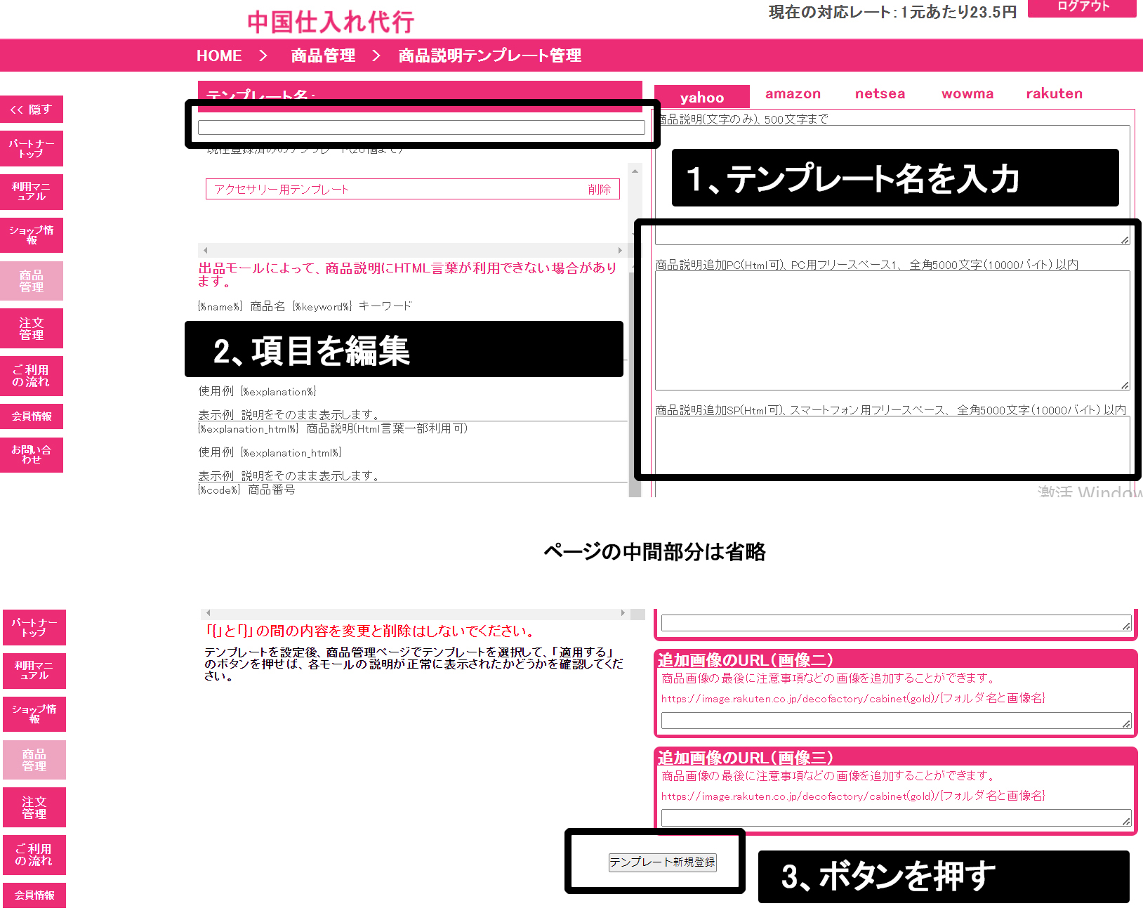 商品説明テンプレート編集