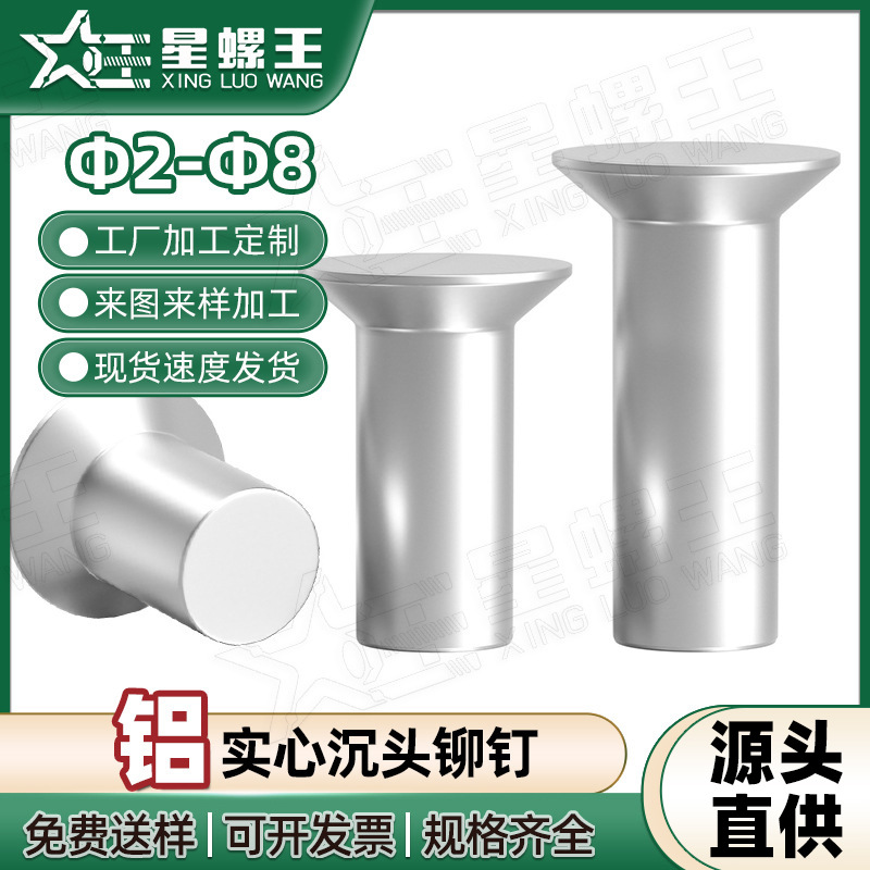 純アルミニウム手打ち式平頭リベット2/3/4/5/6/8mm、アウトドア用品用平円錐頭ソリッドリベット